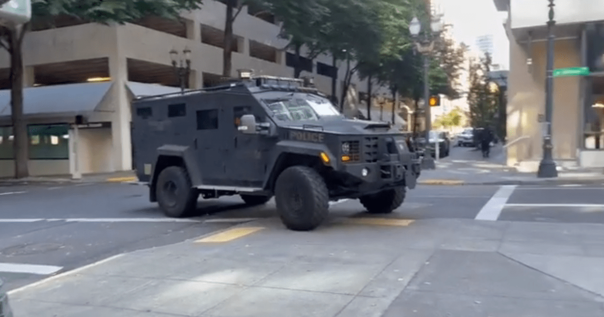 Novas imagens mostram agentes federais chegando a Portland neste sábado (27), após o anúncio do presidente dos Estados Unidos, Donald Trump, de que mobilizaria tropas americanas para a cidade. Vídeos gravados pela KPTV, afiliada da CNN no estado de Oregon, revelam um veículo do departamento de Segurança Interna (DHS) circulando pelas ruas, levando agentes usando máscaras.