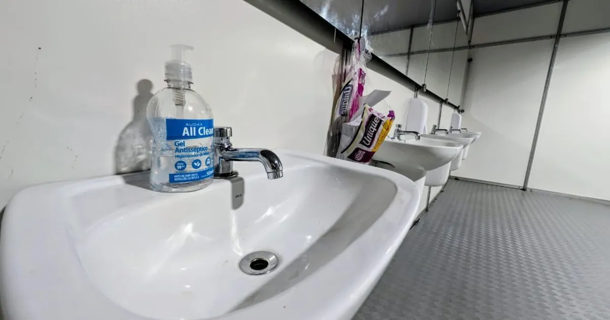 Na tarde desta sexta-feira, segundo dia de funcionamento da área do evento, os sanitários voltaram a ficar sem água no início da tarde. Nas pias, foram colocados frascos de álcool gel.