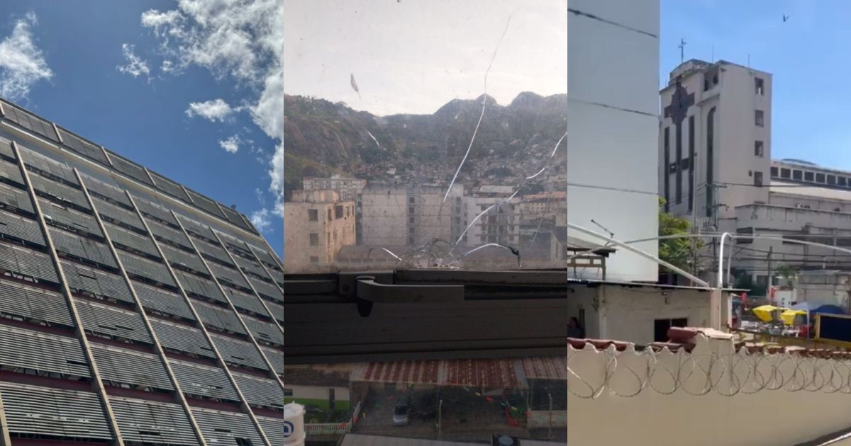 Janela do 5º andar do Hospital do Andaraí atingida em dia de barbarie, após reinauguração com o Ministro da Saúde. @Saude_Rio @minsaude pic.twitter.com/leUW49XkBa
